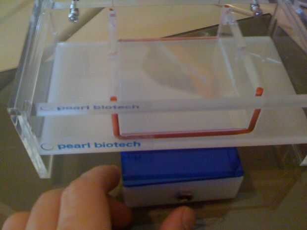 el Gel de electroforesis sistema integrado de una forma para construir su propio sistema de electroforesis de gel.  Electroforesis en gel generalmente tiene tres pasos:El gel de fundiciónAplicando un campo eléctrico a través del gelVisualización de l