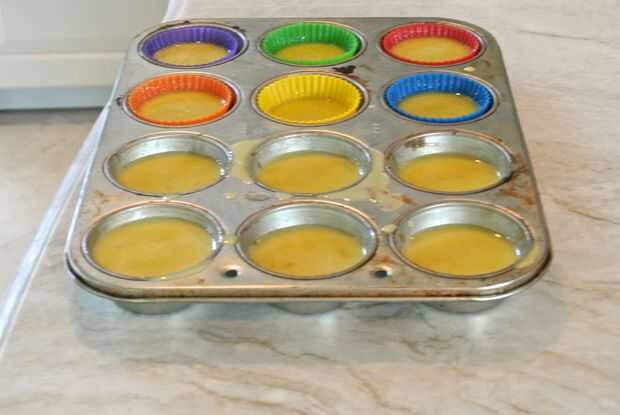 Con las manos, ligeramente engrasar seis moldes, copas o moldes de tamaño similar con aceite de oliva. (Estoy usando un molde de muffin y colocar papeles pintados/capa de silicona en algunos de los agujeros). Panna cotta de retirar del fuego y vierta en los moldes. Enfriar durante al menos cuatro horas. Mientras tanto...