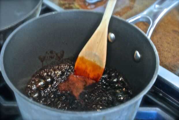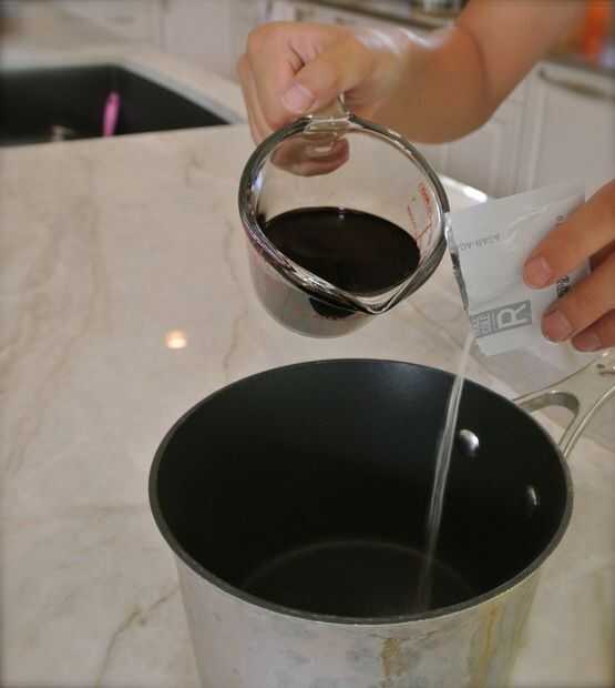 Hervir el agar-agar con el balsámico sobre fuego medio-alto, revolviendo hasta que el polvo se disuelva.