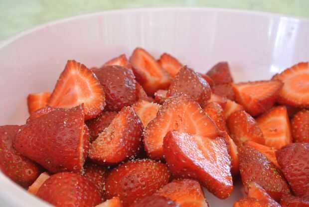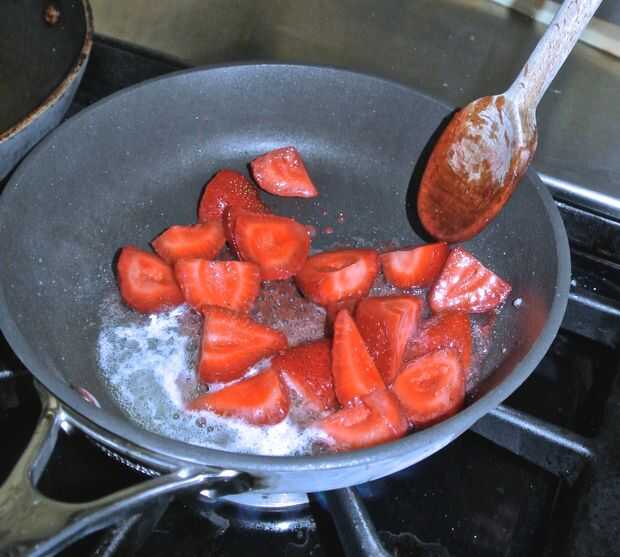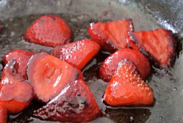 Justo antes de que desea servir la panna cotta, empezar a hacer las fresas.