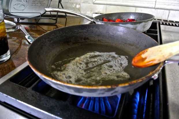 Mezclar las bayas en el azúcar y reservar. Mientras tanto, calentar mantequilla y aceite de oliva en una sartén sobre fuego alto. Derecho, que intenta dorar la mantequilla para ayudar a agregar ese increíble sabor caramelizado. Revolver la mantequilla para cubrir la sartén y mantener una estrecha vigilancia sobre ella! Mantequilla noisette puede quemar en cuestión de segundos! Una vez que la mantequilla esté dorado y huele delicioso, añadir las fresas. Realmente, revolver hasta que tienen un exterior caramelizado por todos lados y otra vez, realmente trate de no quemar!