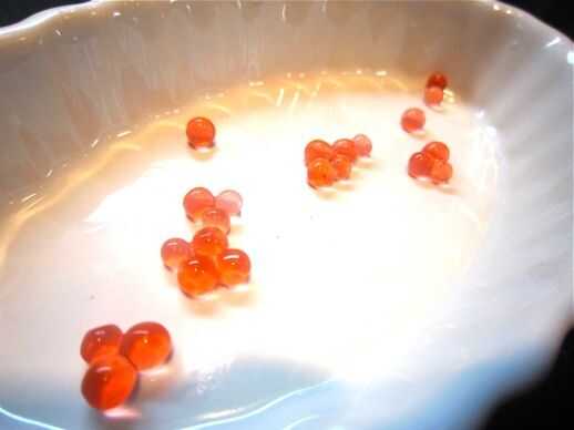 Conclusión 1: Estas mediciones de ingrediente hacen ridículamente grandes cantidades de granos de caviar. Disminuir las cantidades, o utilizar el jarabe de alginato de sodio restante para hacer otro sabor.