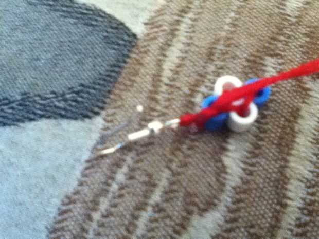 El cuarto de julio está a la vuelta de la esquina! Aquí es una pulsera muy fácil y Linda para mantenerte festivo para el de julio!!!! ¡ DISFRUTE!Cosas que usted necesita:Alrededor de 30 cuentas perler (azul y blanco)14 pulgadas de hilo rojo embrodary