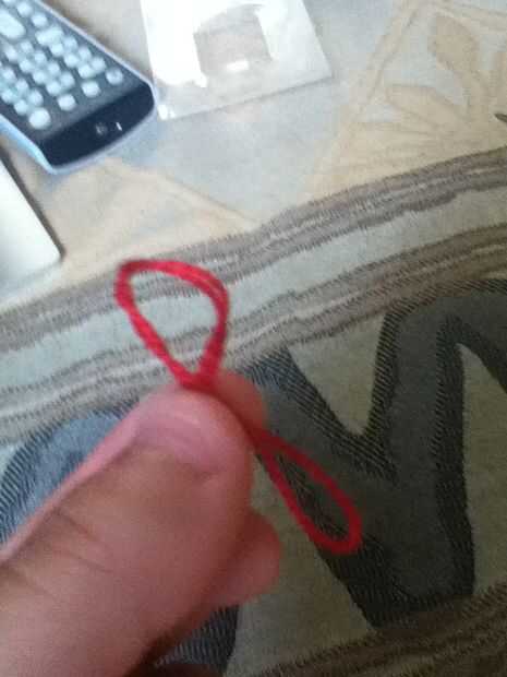 Aquí hay otro tutorial para mantenerte festivo para el adelante!! ¡ Estoy emocionado! ¿Es usted? :)Cosas que usted necesita:Ganchos de pendiente12 pulgadas de seda del bordado rojo4 cuentas perler (azul y blanco)Pistola de pegamentoTijerasPaso 1: Nud