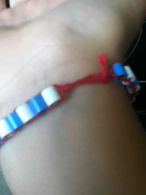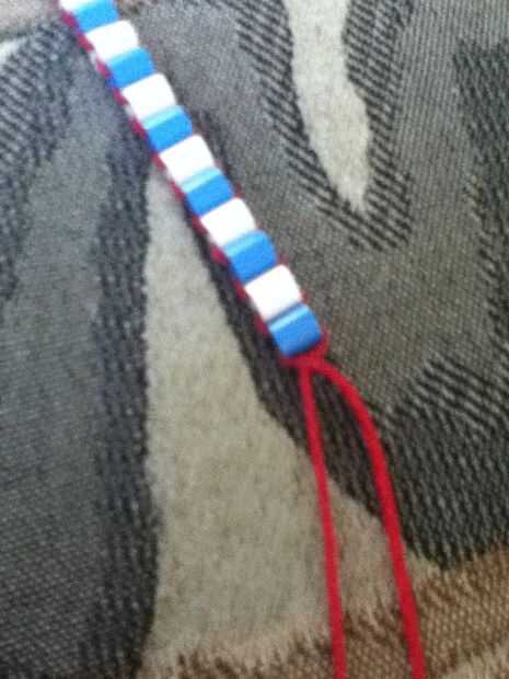 Cuando se ajusta a su muñeca, un nudo cuadrado en la última perla. A continuación, llevar el 2 cadenas al lazo y nudo cuadrado la cadena en el bucle. Luego, fuera de seda del bordado de exceso y disfruta!