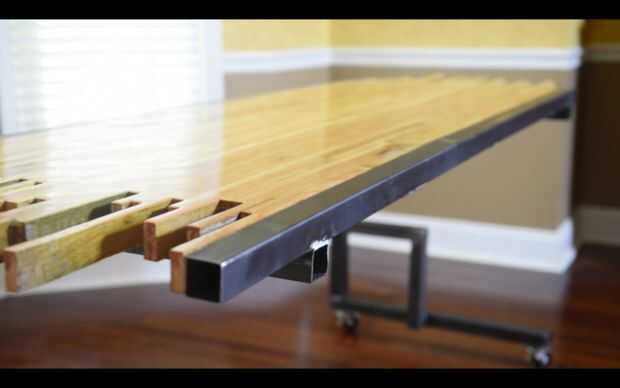 En un sentido, yo quería el escritorio para que parezca estaba flotando. Por eso las patas y el marco son de acero. No tienes que usar una tonelada de acero para el escritorio para ser fuerte. Yo quería ser capaz de ajustar la altura de la mesa para que si alguien lo estaba usando, también podría trabajar para ellos. Por último, no quería que este escritorio para cada escritorio, así que me fui a un poco loca con la veta!