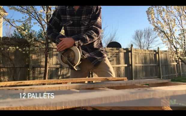 Quitar los clavos de los palets es simplemente chistosa, es demasiado lento. En su lugar usando una circular (habilidad de sierra) recorte los listones. Tenga muy cuidado de no cortar clavos. Uñas pueden hacer que la sierra salte violentamente. Esto toma algún tiempo, así que sea paciente