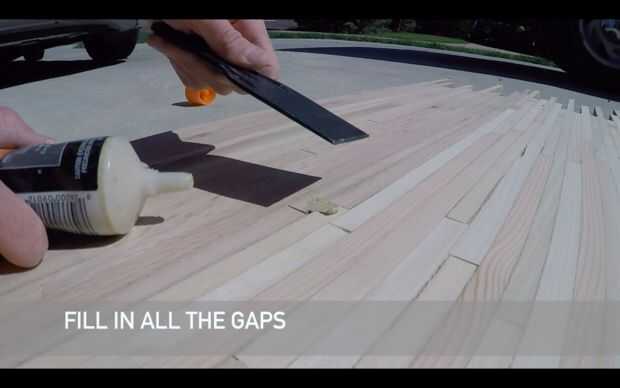 Rellene cualquier y todos los agujeros con masilla para madera. Lijar la superficie con grano 80 120 entonces el papel de 240 grano de arena para conseguir un muy buen acabado. Limpie la superficie con un paño de microfibra para quitar todo el polvo y luego tomar la mesa dentro.