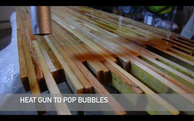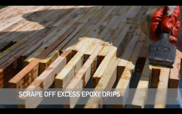 Deje el epoxi por 72 horas para que cure completamente. A continuación, usted querrá raspar las gotas de epoxi en la parte inferior de la tabla.