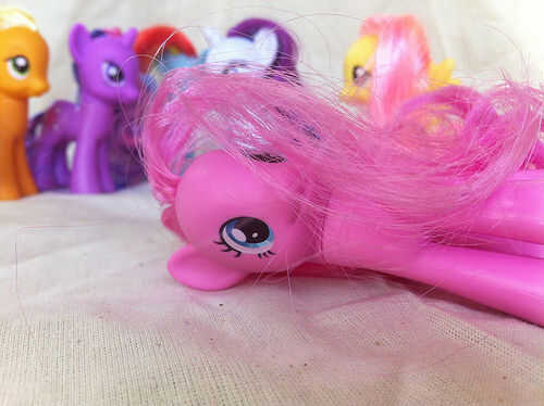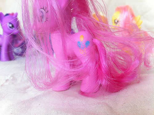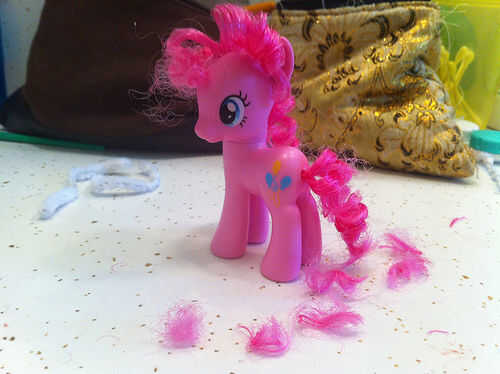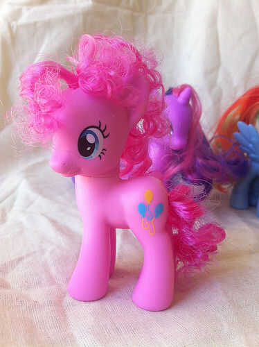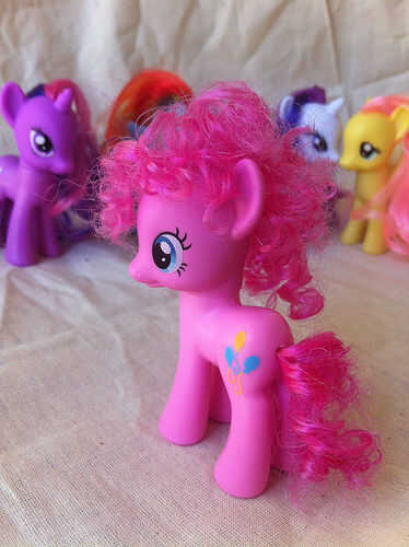Todo el mundo que Hasbro de My Little Pony: la amistad es magia sabe que Pinkie Pie tiene el pelo muy rizado. Se convirtió en rizado alrededor de la época cuando ella consiguió su marca cutie. La Pony Pinkie Pie en las tiendas de juguete, sin embargo, no tiene pelo rizado. Niza va, Hasbro.