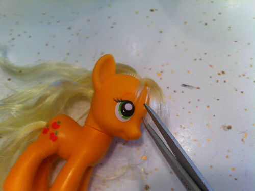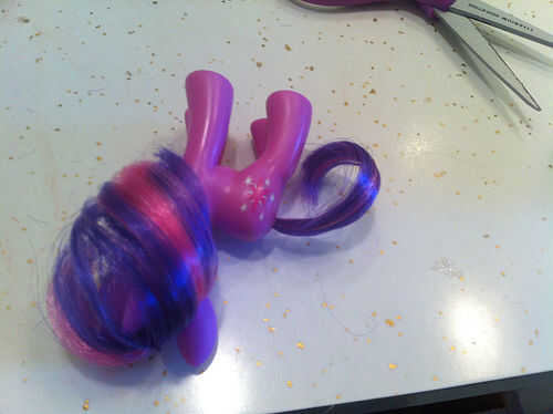 Otros ponis podrían necesitar ajustes en el pelo, demasiado, pero ninguno de ellos tan drástica como la de Pinkie Pie. Applejack tiene flequillo corto, por ejemplo, y Twilight Sparkle necesita un ajuste y un modelado suave de su melena. Asegúrese de obtener ayuda de un adulto antes de cortar el pelo de cualquier caballo. Puede parecer simple, pero puede ser demasiado corta demasiado rápido.