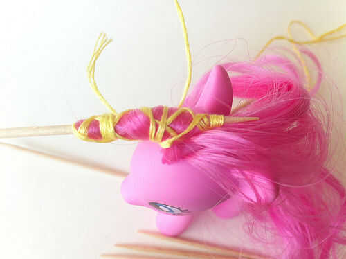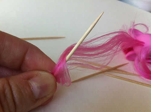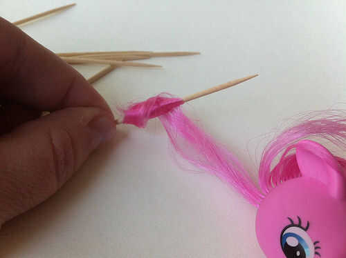 1. suavemente desenredar pelo de Pinkie Pie utilizando un palillo de dientes. No utilice un cepillo o puede frizz.