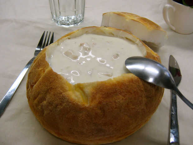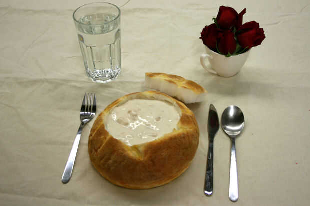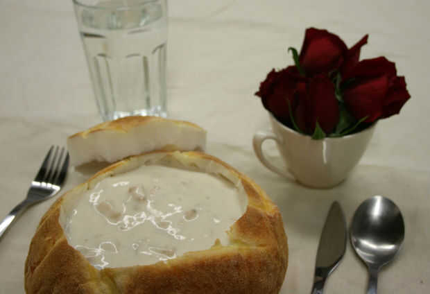 sopa de tomate en un cuenco de panPaso 1: comprar pan en la panadería comprar pan en la panaderíaPaso 2: cortar la parte superior corte la parte superiorPaso 3: quitar el relleno de pan quitar el relleno de panPaso 4: Ahora ponga la sopa en el recipi