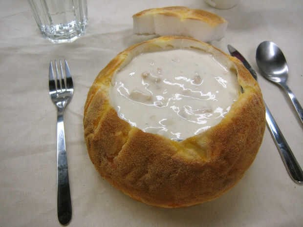 sopa de tomate en un cuenco de panPaso 1: comprar pan en la panadería comprar pan en la panaderíaPaso 2: cortar la parte superior corte la parte superiorPaso 3: quitar el relleno de pan quitar el relleno de panPaso 4: Ahora ponga la sopa en el recipi