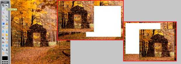 Mover herramienta – Haz clic en el botón, a continuación, haga clic y arrastre la pantalla para mover la capa, selección, etc.. Esto funciona con cualquier tipo de herramienta de selección.