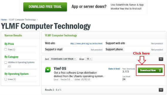 Primero vamos a descargar el archivo de Ylmf OS. Es una distro vieja, así que ya no está disponible del desarrollador (http://www.ylmf.org/en/ ... ningún punto haciendo clic en el enlace; no hay nada allí), pero he encontrado el original en CNET.