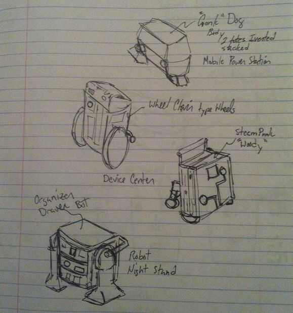 Las fotos de arriba son el diseño del droid y el bote de basura en que se asentaron.