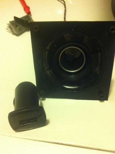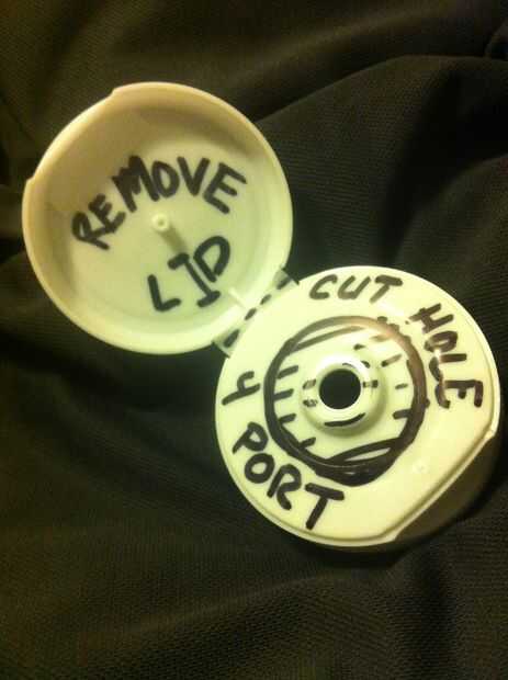 Simplemente ahuecar el centro de la boquilla de la mitad de la tapa haciendo un agujero lo suficientemente grande como para montar un enchufe del estilo de automóvil 12V.