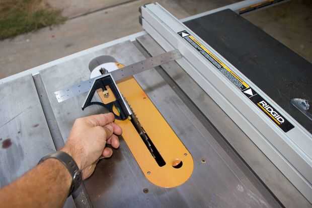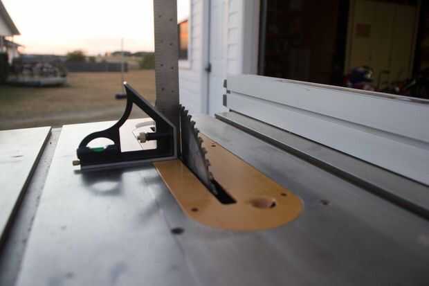 3. Asegúrese de que el disco quede perpendicular a la mesa. Este es fácil de sobre la mirada. Mucha gente se olvide de mirar el ángulo de bisel y terminar con los cortes retorcidos. Use la escuadra de combinación para asegurarse de que la hoja es recta hacia arriba y hacia abajo antes de cortar.