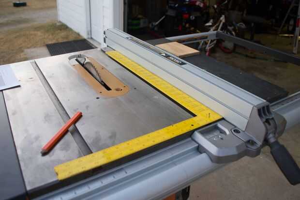 1. Asegúrese de que la cerca esté a escuadra con la mesa. Uso de su plaza de encuadre.