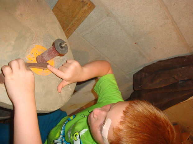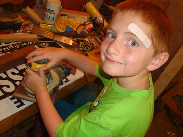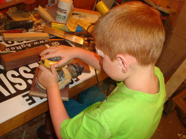 Jack consiguió una buena lección en lijar madera. Pensé aburro con esto pero lo hizo bastante bien.