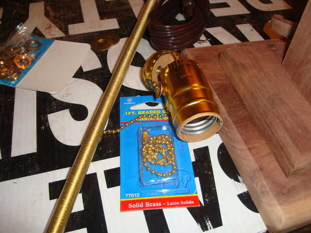 El reto era hacer una lámpara barata de cosas que ya tenía puesta alrededor.Materiales-1 paquete de calzas del cedro ($3 - $4 en Home Depot)-Algunos chatarra fina caoba-Madera contrachapada un poco-Las piezas de la lámpara pedí en ebay por unos $10-P