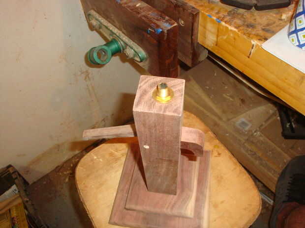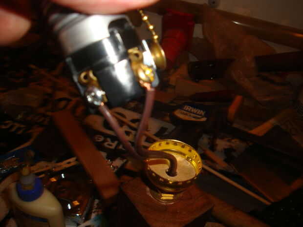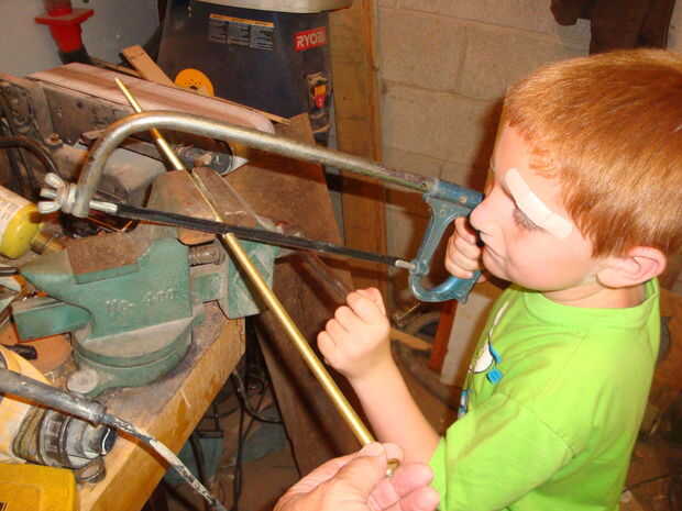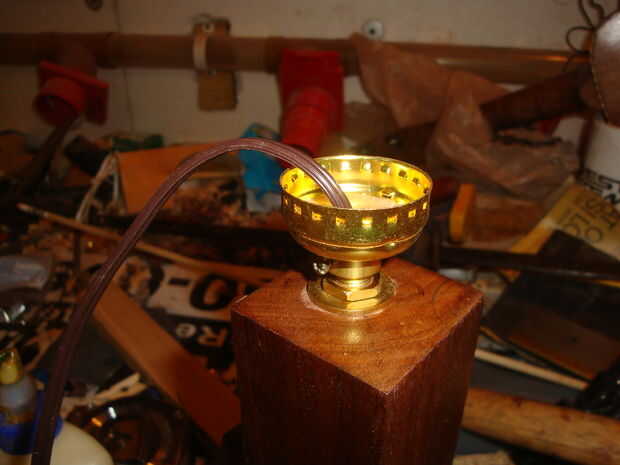 Jack utiliza "sí por él mismo" un hack Sierra para cortar 13" pedazo de tubo de cable de cobre de 3/8". Después de pegar la base y juntas de vivienda hemos utilizado una arandela y tuerca en la parte inferior del tubo funcionó a través de la lámpara y coloque otra arandela y la tuerca en la parte superior de la bomba. Se trata de la pinza sólo utilizamos después de apretar este no tenía necesidad de otras pinzas