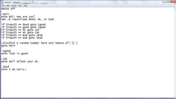Set /p entrada = tipo buena, bien o mal: