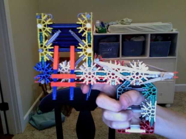 Esta pistola dispara barras azules.