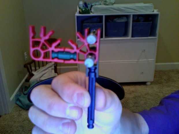 esto es una pistola de KVG diseñé con compartimientos de doble carga que fácilmente pueden disparar más de 40 pies con buenas gomas y pueden progresar con minerales, o de bandas de caucho más fuerte. Puede contener 25 barras azules a la vez, por lo q