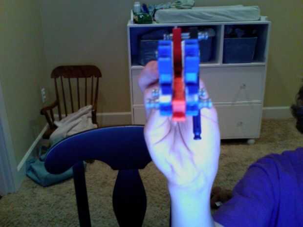 esto es una pistola de KVG diseñé con compartimientos de doble carga que fácilmente pueden disparar más de 40 pies con buenas gomas y pueden progresar con minerales, o de bandas de caucho más fuerte. Puede contener 25 barras azules a la vez, por lo q