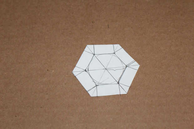 Dibujar líneas a lo largo de ese borde recto hacia el exterior a los bordes del hexágono más grande.