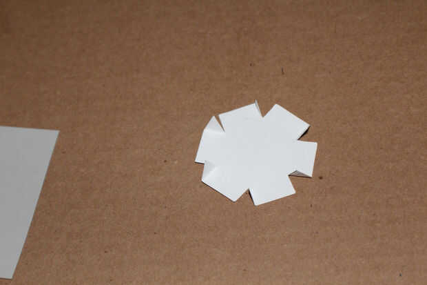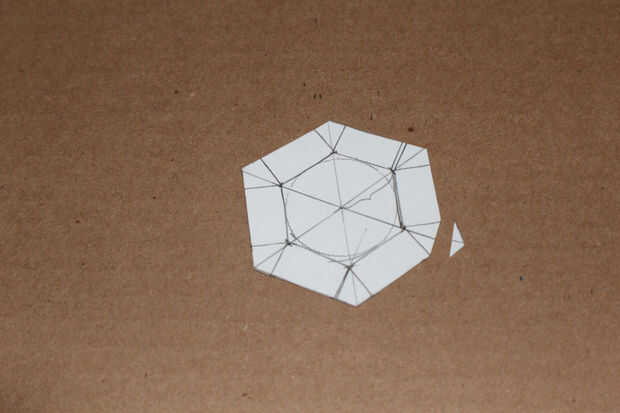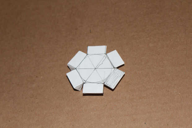 En las esquinas del hexágono son pequeñas secciones en forma de cometa. Con unas tijeras, cortar cada uno de estos a través de la parte más ancha para dejar sólo los triángulos más.