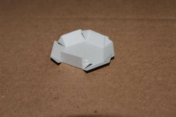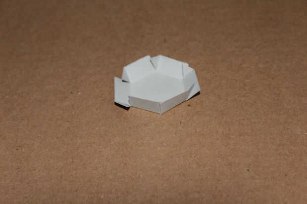 Usando un palillo de dientes, extender una pequeña cantidad de pegamento en la parte exterior del triángulo y pulsa en el interior del rectángulo correspondiente.