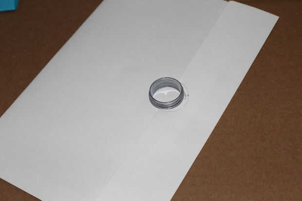 Coloque la tapa en la aleta sobre el semicírculo, centrándola sobre la primera marca y para hacer un doble medio círculo trace.