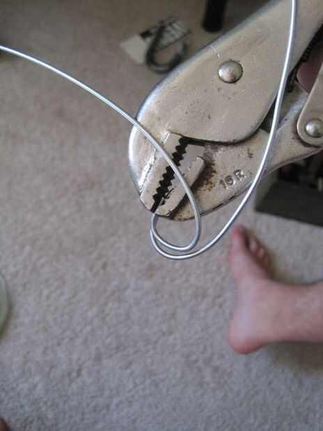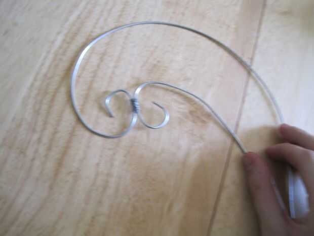 Para el diseño que estaba tratando de crear, comenzó con un pequeño lazo. Junto con el aspecto decorativo, disminuye la posibilidad de que el usuario será rasguñado o apuñalado al intentar usar el pin. Con este paso, he probado varios diferentes objeto redondo para tratar de conseguir una pequeña curva que me ha gustado. Lamentablemente, ninguno de ellos trabajó bien en todo por lo que terminé usando mis alicates y acaba echando un vistazo lo. Una de las cosas que nos gustó el pin era su reflejo y su simetría. Como resultado, se hizo un segundo bucle, tratando de recrear lo más cerca posible del lazo. Doblar el alambre en la curva de mayor general y me había conectado los dos bucles partidos envolviendo el alambre 22 calibre alrededor del punto de encuentro. Asegúrese de envolver el comienzo del cable en un par de bucles para mantener el alambre apretado mientras envuelve.