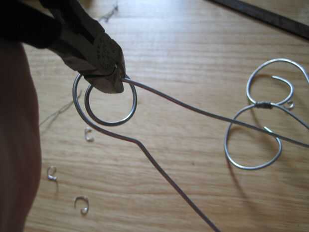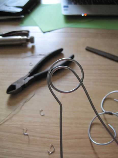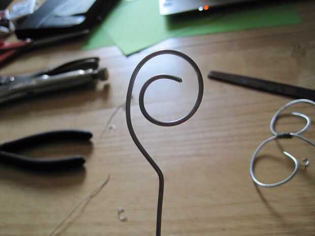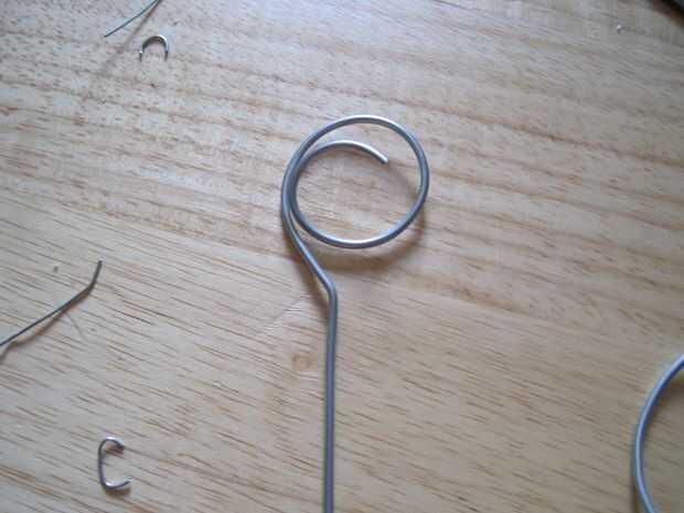 Guardar el paso mejor (y más fácil) para el final. Enderezar un trozo de alambre (cerca de 18", usted puede siempre cortar el exceso) y limar los bordes. Manteniendo el diseño que fluye, que decidí hacer un remolino para hacer el perno un poco más decorativo. He decidido que poner una curva pronunciada centros el remolino mientras que también se destaca un poco en contra de todas las curvas más suaves. Lamentablemente, la curva cerrada se oculta durante el uso, oh bien. Es una buena idea de tamaño y recorte el exceso de cable en el pin en este momento. Pero en este punto, es todos!