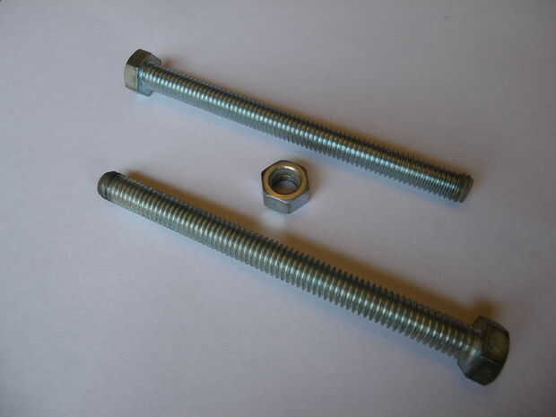 He encontrado que dos pernos de 3/8 de pulgada de diámetro son bastante fáciles de encontrar y trabajar bien para nuestros propósitos. La longitud de los tornillos puede variar desde 1 pulgada hasta 4 o 5 pulgadas. Tornillos más largos a menudo trabajan mejor ya que permite el dispositivo de caída recta y con un golpe más pesado. Perno grueso también podría dar mejores resultados, ya que permiten más cabezas de partido de habitación.