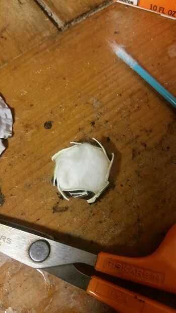 lo que yo hice, fue (y otra vez, en alcance de brazos) cortar un trozo de círculo de cartón de un contenedor de minute maid y cortar pequeñas muescas alrededor del círculo y podría doblar más para la aleta sobre algunos algodón de punta q. jajaja