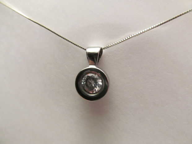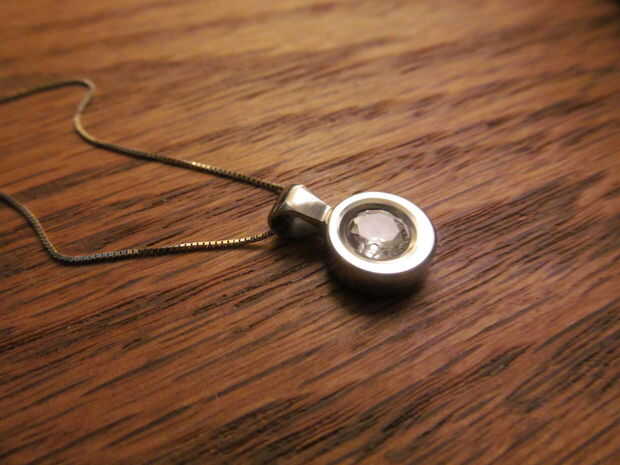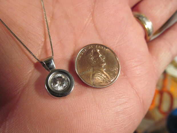 Hice esta usando un perno hexagonal, alambre, metal de hoja y una piedra de circonio cúbico. Todo vino de la tienda con la excepción de la piedra. Llegué a destino.