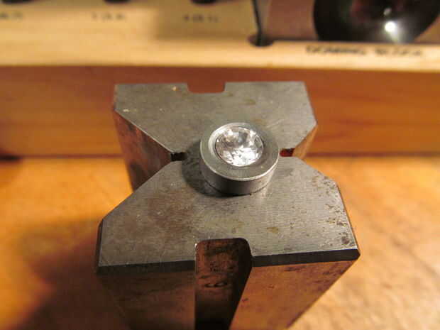 Coloque la piedra en el orificio. Envolver un trozo de alambre alrededor de una barra redonda y forma una bobina. Corte uno de los anillos de la bobina y los bordes del archivo plano. Cierre el anillo y ponerlo detrás de la piedra como una detención.