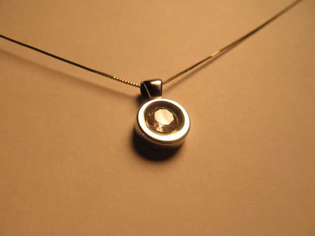 día de San Valentín está a la vuelta de la esquina pero no tienes que romper el Banco para que su novia sonrían. Este colgante está hecho de dos monedas y una piedra de circonio cúbico.Para hacerlo he martillado a cinco centavos y en forma de un cora