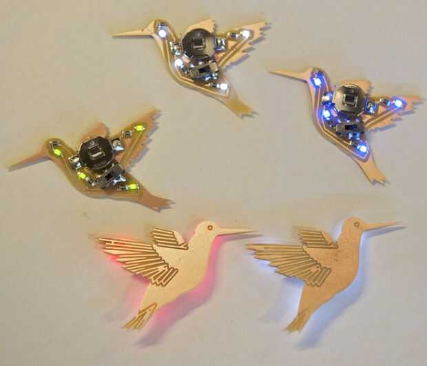 Este proyecto es una spin-off de mi collar colibrí de PCB. Esta vez, lo hice con la batería y el interruptor incorporado para que el collar podría ser utilizado como un pin. Ahora usted puede lucir sus diseños brillantes en muchos lugares más!