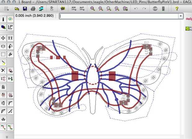 Estos pernos están hechos de espacios en blanco de placa de circuito de doble cara FR-1. El frente está grabado con el diseño y la parte de atrás está grabado al agua fuerte con los rastros electrónicos. Todas las versiones tienen un interruptor excepto la libélula — no había lugar! Para apagar el encendido y apagado, usted tiene que quitar la batería.
