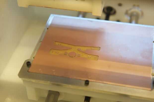 Primero corta el lado del tablero de circuito. Cuando se hace ese lado, la máquina se detendrá así que usted puede voltear el tablero tanto en Otherplan como en la máquina real.