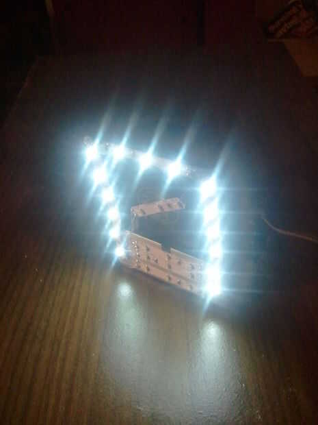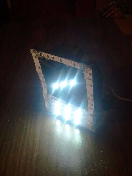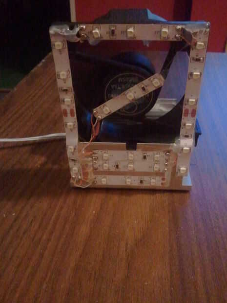 Después de montó el ventilador que sople el humo pensé en conexión con un solo foco de algún tipo. Entonces me encontré con una carga de tira de LED blanco frío de cortes de los proyectos anteriores (cocina) así que abofeteó a un conjunto de ellas sobre el ventilador y utiliza dos interruptores para seleccionar cuáles se activa.