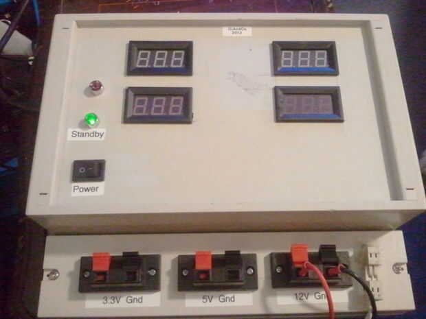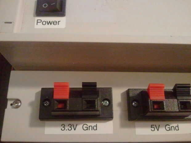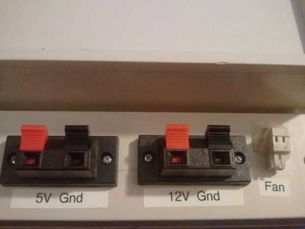 Los terminales de resorte me permiten conectarse directamente a los 3, 3V, 5V y las líneas de 12V. Como tiendo a usar los 5V y 12V más de los 3, 3V (y el hecho de que sólo pedí dos de cada uno de los metros del panel) dispone un voltímetro (rojo) y un medidor de corriente (azul) a las líneas. Ambos de eBay.