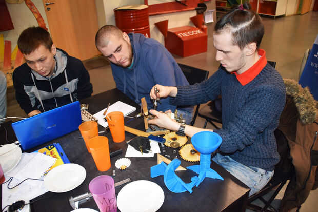 Mecanismo de rotación se implementa con el motor y los engranajes. El engranaje principal está fijado sobre un soporte inmóvil (la pierna), a través del rodamiento que este equipo se conecta con el piso de la choza. El motor está montado en el piso. Potencia del motor es de 12 voltios. Eje centrado fue utilizado para la combinación de este mecanismo.