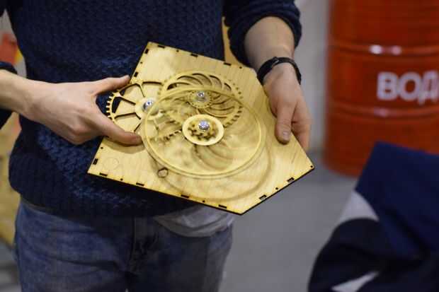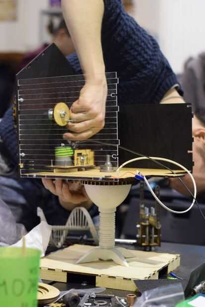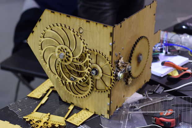 Vistas previas de cambios fueron editadas en el editor de vectores y producidas en una máquina láser. Bloque de almohadilla rodamientos fueron montados en el mecanismo y fue conectado con el motor más Intel Galileo y N-coder.