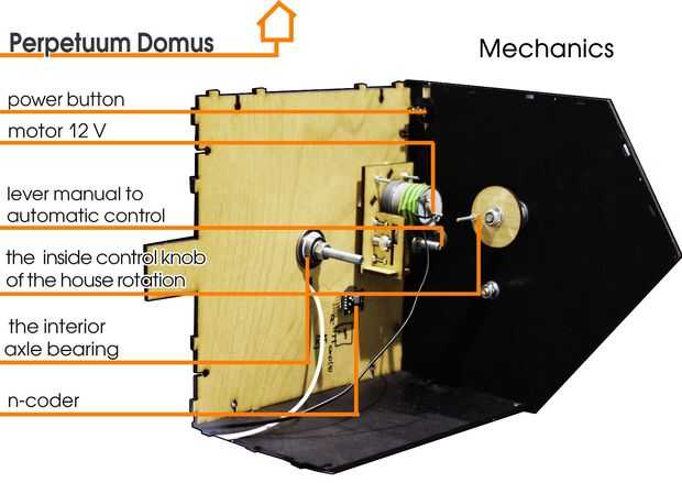 El motor está equipado con un rotor que permite para conectar directamente un mecanismo de rotación, facilidad de control manual se logra a través de los engranajes de la transmisión en la fachada. La choza de gira con un motor de DC de 12 voltios.